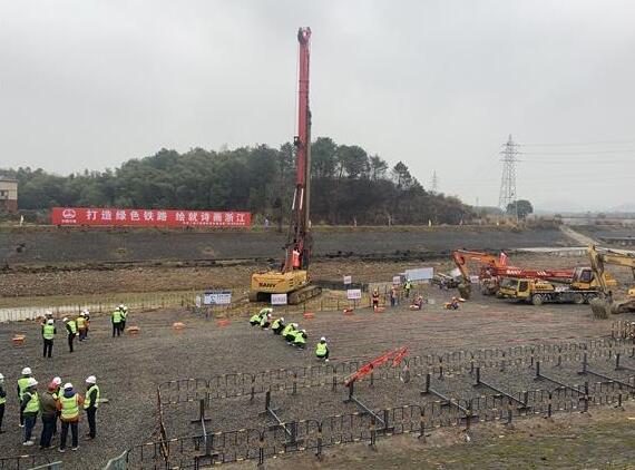 2月27日上午,伴隨著旋挖機的轟鳴聲,位于高鐵桐廬站不遠處的杭溫鐵路二期跨杭黃鐵路特大橋首根樁基順利開鉆,標志著項目主體工程施工拉開帷幕。