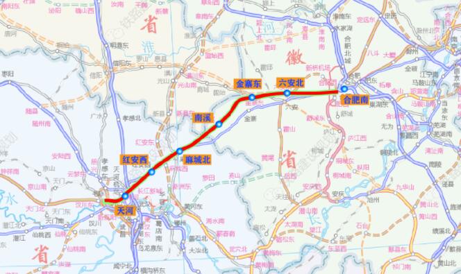 沿江高鐵合肥至武漢段可研平面示意圖(紅色線)▼