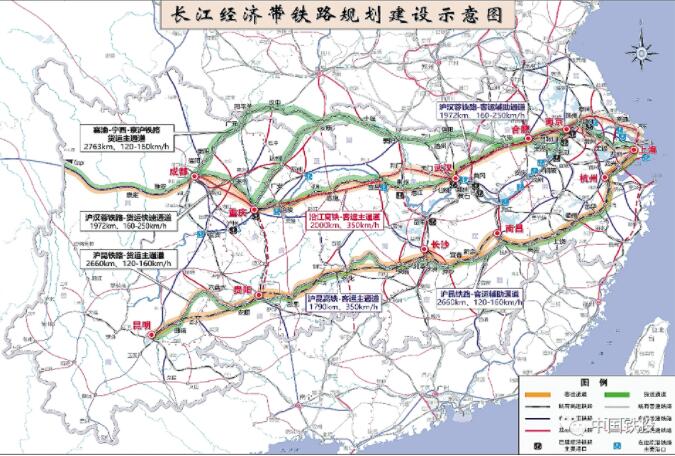 沿江高鐵主通道線路規(guī)劃示意圖▼