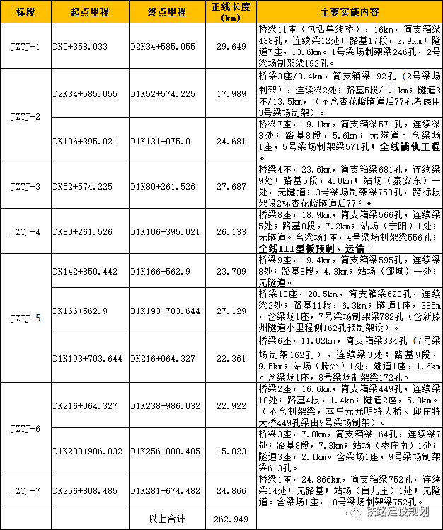本次招標共劃分7個標段,即JZTJ-1、2、3、4、5、6、7,詳見下表。