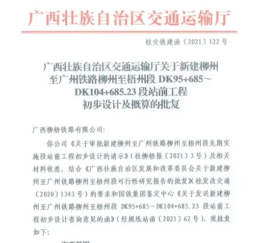 廣西鐵投消息:3月15日,柳梧鐵路項目先期開工段站前工程初步設計獲自治區交通運輸廳批復,為項目先期開工段開工建設提供了重要先決條件。
