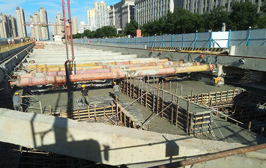 東二環路站位于成吉思汗東街與北二環交叉路口西側200米,沿成吉思汗東街布置,車站主體總長193米,標準段寬度19.7米,為地下兩層11米島式站臺,地下一層為站廳層,地下二層為站臺層。車站共設3個出入口2組風亭。車站大、小里程端均設盾構接收井,采用明挖順作法施工,共分兩期施工,一期施工車站主體結構,二期施工車站附屬結構。