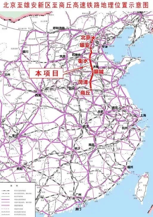 文件公開信息顯示,北京至雄安新區(qū)至商丘高速鐵路雄安新區(qū)至商丘段位于京滬高速鐵路、京廣客運(yùn)專線兩大干線之間,線路長度552.547km,途徑3省、9市31縣(區(qū)),共設(shè)雄安、任丘西、肅寧東、深州東、衡水南、棗強(qiáng)南、清河西、臨清東、聊城西、臺(tái)前東、梁山、鄆城、菏澤東、曹縣西、商丘站15 個(gè)車站。工程建設(shè)總工期 4 年,總投資 810.8 億元,設(shè)計(jì)速度目標(biāo)值350km/h。