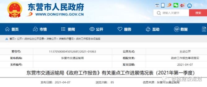 4月7日,東營市人民政府網(wǎng)站發(fā)布東營市交通運輸局《政府工作報告》有關重點工作進展情況表(2021年第一季度),其中披露了京滬高鐵輔助通道和淄東城際鐵路的最新進展。