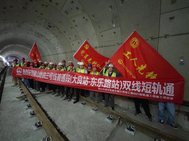 東樂路-大良區間的雙線短軌通,為后續供電、信號、人防門、站臺門、裝修等專業的進場創造了條件,同時比計劃時間節點提前完成鋪軌任務,為后續各專業施工起到了良好示范作用。