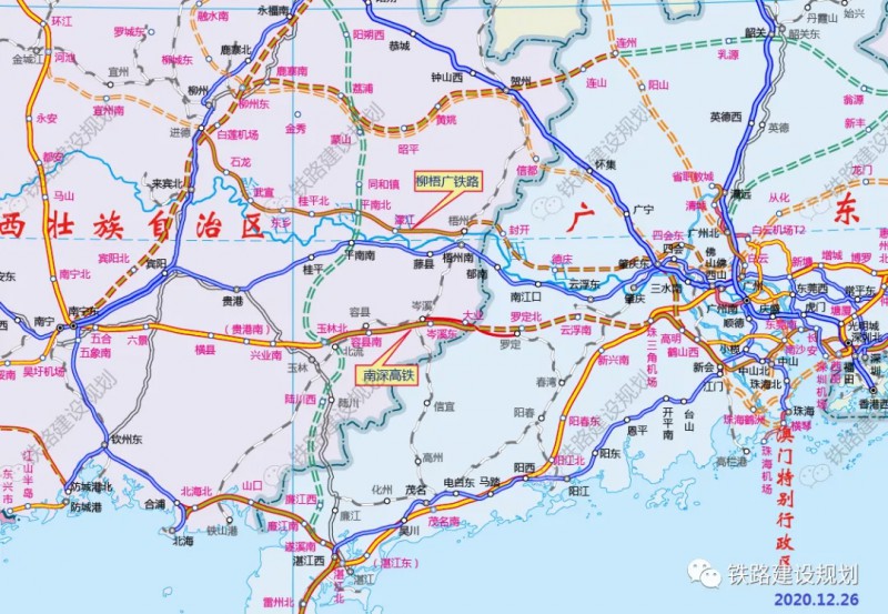 柳廣鐵路位于廣西、廣東境內,線路自柳州樞紐進德站引出,向東南經來賓市、貴港市、梧州市,經梧州市進入廣東境內,經肇慶市、肇慶至廣州樞紐,線路全長約453km。