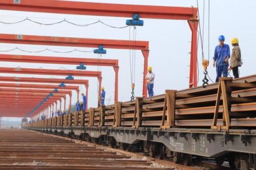 隨著長軌列車進入基地停穩(wěn)、摘鉤、防溜等一系列措施完成后,早已做好卸車準備的作業(yè)人員迅速進入工作狀態(tài),現(xiàn)場一片繁忙,施工人員各司其職,整個卸車過程迅速有序地進行著。經(jīng)過全體在場人員的共同努力,順利卸完第一列總長12.5公里的長軌,為鋪軌工程的全面展開奠定良好基礎。