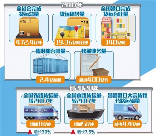 交通運輸部副部長劉小明在會上表示,交通運輸部制定了推進運輸結構調整三年行動計劃,目標到2020年實現全國鐵路貨運量較2017年增加11億噸、增長30%,水路貨運量較2017年增加5億噸、增長7.5%,沿海港口大宗貨物公路運輸量減少4.4億噸。