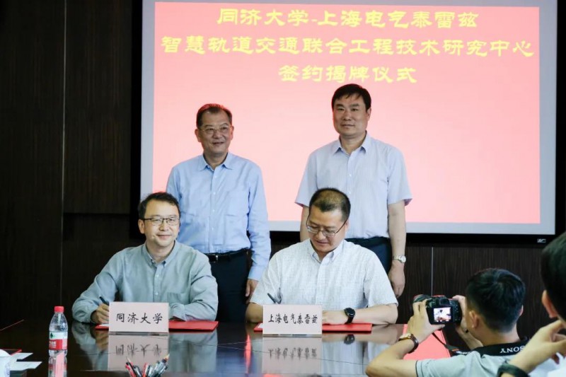 6月16日,同濟大學和上海電氣泰雷茲“智慧軌道交通聯(lián)合工程技術(shù)研究中心”簽約揭牌儀式在同濟大學四平路校區(qū)舉行。同濟大學副校長雷星暉,上海電氣軌道交通集團總裁賈廷綱見證了此次簽約儀式并為研究中心揭牌。同濟大學電子與信息工程學院副院長尹學鋒,上海電氣泰雷茲交通自動化系統(tǒng)有限公司首席執(zhí)行官沈洪作為雙方代表在協(xié)議上簽字。