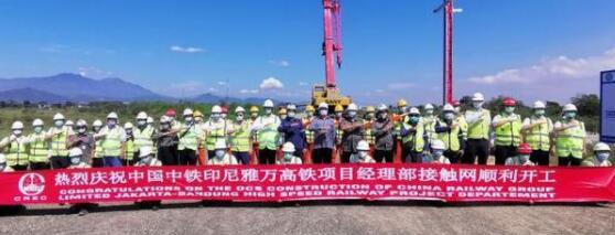 6月16日,中鐵印尼雅萬高鐵項目經理部在印尼萬隆德卡魯爾車站成功組立接觸網第一桿,這標志著雅萬高鐵站后工程正式進入施工階段。
