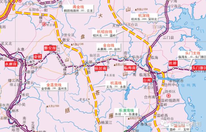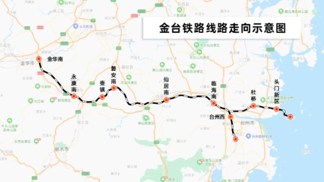 金臺鐵路全長234.923公里,為國鐵I級單線客貨兼運鐵路,預留雙線條件,設計時速160公里。沿線在永康南、壺鎮、磐安南、仙居南、臨海南、臺州西、杜橋、頭門港等8個站辦理客運業務。
