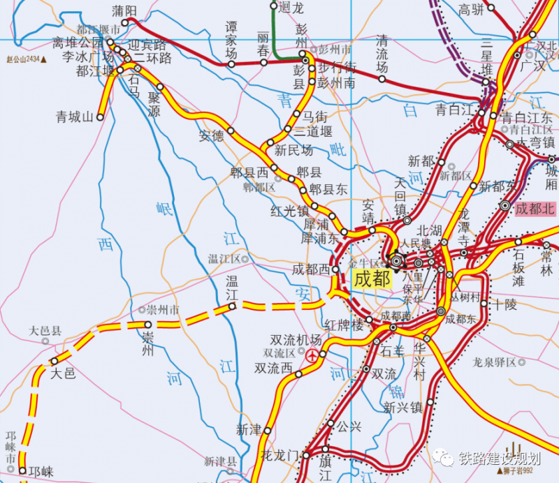 改建樞紐環線及相關聯絡線工程:主要對既有樞紐環線(長55.13公里)進行鐵路公交化改造,對環線上既有成都、成都東、成都南、紅牌樓、成都西、安靖等6座車站進行公交化客運適應性改造,并在環線上新增駟馬橋、致興路、成南高速、新成龍路、武侯大道、草金路、蜀西路、洞子口等8座公交化客運車站。