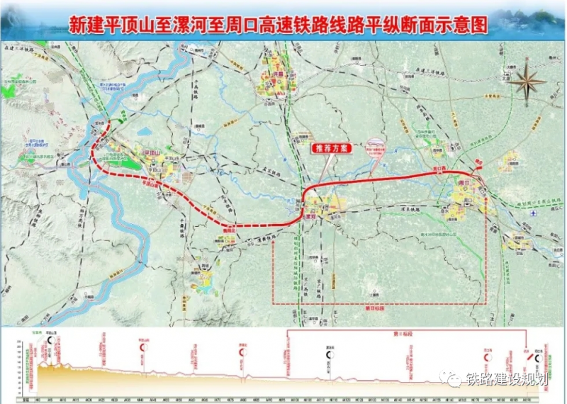 線路西起鄭萬高鐵平頂山西站,經(jīng)平頂山南、漯河,至鄭阜高鐵周口東站,連接鄭萬、京廣、鄭阜高鐵,正線長度約195.5km,全線擬設(shè)車站6座。