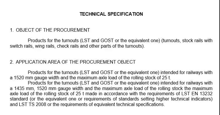 當地時間7月9日,立陶宛國家鐵路公司發布國際招標,邀請專業公司參與資格預審。將采購(GOST、LST 或同等產品)鐵路道岔,用于1520mm軌距、1435mm軌距、最大軸重25噸鐵路系統。