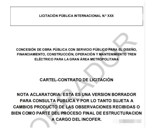 2021年5月25日,哥斯達(dá)黎加國家鐵路局公布哥斯達(dá)黎加電動車組項(xiàng)目的招標(biāo)草稿,以便有興趣參與項(xiàng)目招標(biāo)的公司以及哥斯達(dá)黎加公眾團(tuán)體提出修改意見。