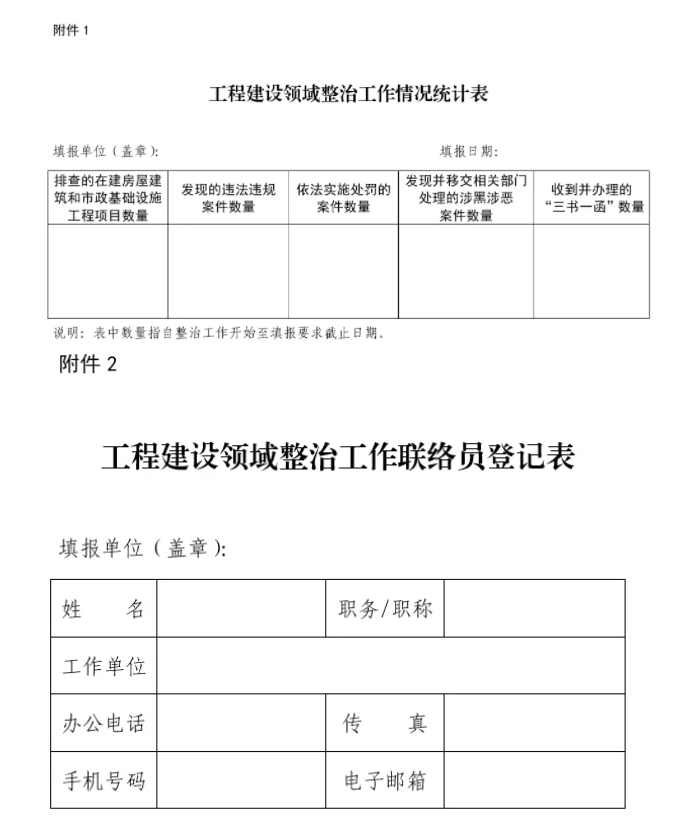 請省級住房和城鄉(xiāng)建設主管部門確定一名同志作為整治工作聯(lián)絡員,于2021年9月30日前將整治工作方案和聯(lián)絡員登記表(附件2)報送我部建筑市場監(jiān)管司。各地在開展工程建設領(lǐng)域整治工作中遇到的重大問題,請及時報送我部。
