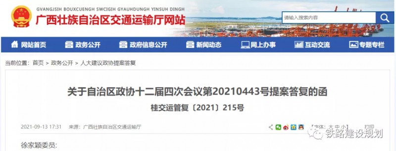 9月13日,廣西交通廳網站公開了《關于自治區政協十二屆四次會議第20210443號提案答復的函》(桂交運管復〔2021〕215號),全文內容如下: