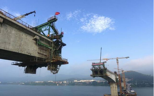 日前,漢十高鐵漢江特大橋主橋連續剛構施工已完成220米,進入到最后的“百米沖刺”階段,跨度300米的主橋預計將于今年10月合龍。