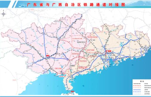 謀劃推進4條:河唇至合浦鐵路、懷化經桂林至湛江鐵路、深南高鐵與廣湛高鐵茂名至岑溪連接線、柳州經賀州至韶關鐵路。