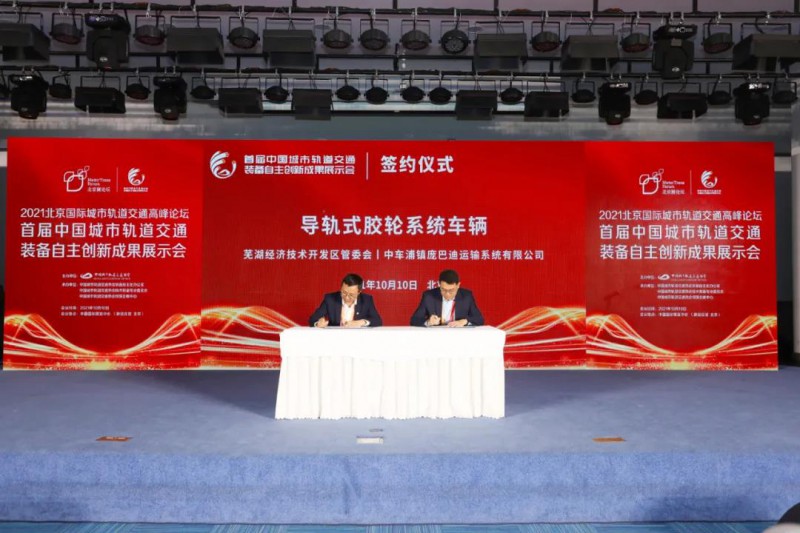 10月10日下午,在北京國際軌道交通展現場,中車浦鎮龐巴迪運輸系統有限公司與蕪湖經開區管委會簽署了RRT項目框架合作協議,雙方將共同推進導軌式膠輪智慧捷運系統(RRT)項目合作。這是在10月9日該產品發布后,獲得的又一利好消息。