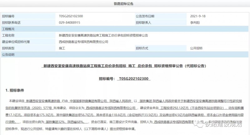 鐵路建設規劃消息:10月15日, 新建貴陽至南寧鐵路廣西段站房及相關工程、新建貴陽至南寧鐵路荔波(不含)至南寧東(含)段(DK176+221~DK515+255)“四電”及客服系統集成及相關工程GNZH-1標段施工總價承包招標資格預審公告正式發布。項目站房及“四電”工程即將進入全面施工階段。