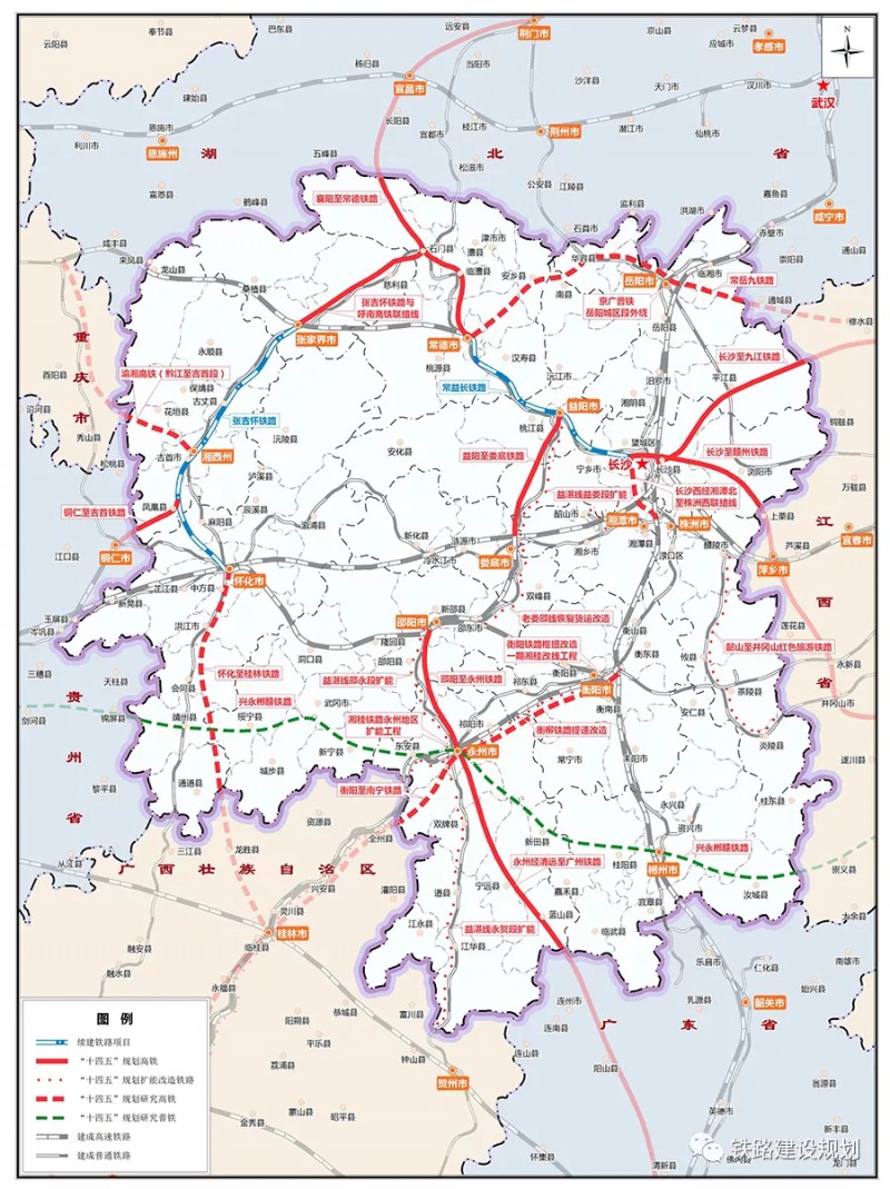 將建成投產贛深、張吉懷、常益長等16條、2450公里高鐵新線,加快建設龍梅龍、常岳九等一批粵湘瓊對外鐵路大通道,粵湘瓊三省除海南三沙市外實現“市市通高鐵”。
