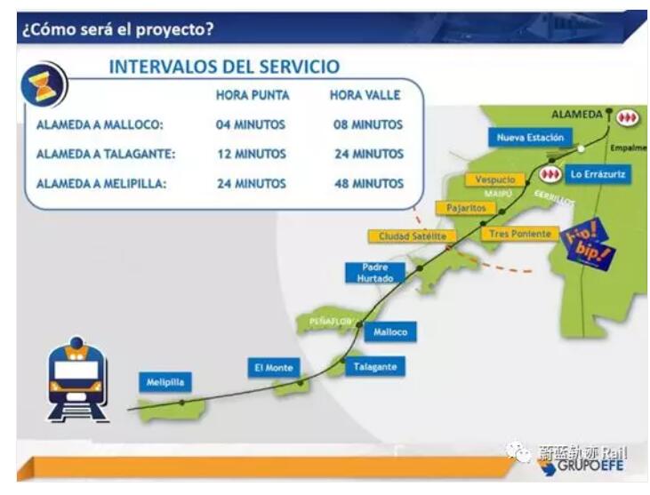 圣地亞哥-梅利皮拉鐵路項(xiàng)目,預(yù)計(jì)全長61公里,連接首都與8個(gè)地區(qū),共有11個(gè)站點(diǎn),主要連接首都中央車站,塞利約區(qū),邁普區(qū),烏塔多區(qū),佩涅弗洛區(qū),塔拉甘特區(qū),蒙特區(qū)和梅利皮拉區(qū),并且將會與首都圣地亞哥地鐵1號線,6號線連接。年運(yùn)載量將達(dá)到6000萬,線路運(yùn)行時(shí)間將減少近2個(gè)小時(shí)。