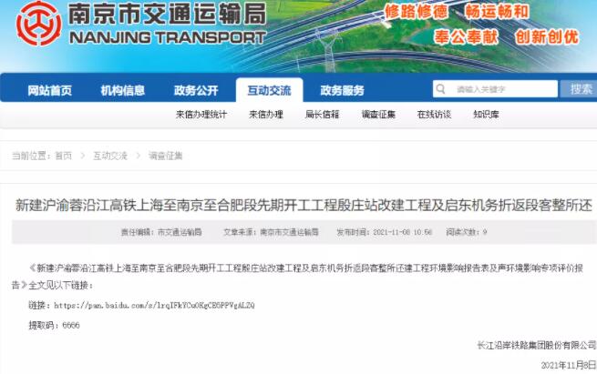 11月8日,《新建滬渝蓉沿江高鐵上海至南京至合肥段先期開工工程殷莊站改建工程及啟東機務折返段客整所還建工程環境影響報告表及聲環境影響專項評價報告》發布。