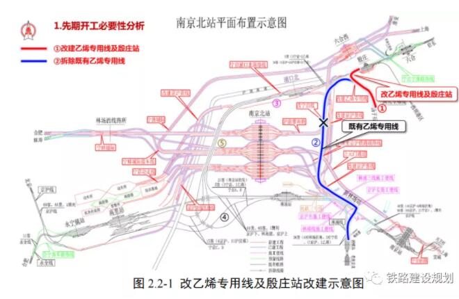 功能定位為:是一條以路網功能為主,兼顧城際功能的高速鐵路骨干線路。滬渝蓉沿江高鐵上海至南京至合肥段引入南京樞紐,占用部分揚子乙烯專用線線位,需將揚子乙烯專用線部分線路改線并調整至殷莊站接軌。