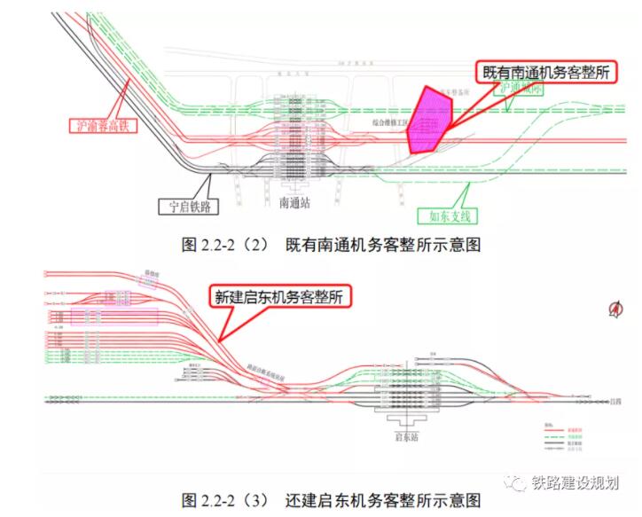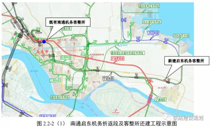滬渝蓉沿江高鐵上海至南京至合肥段引入南通地區,在既有寧啟鐵路南通站北側新建車場,占壓了既有南通機務客整所,需要先將南通機務客整所還建至寧啟鐵路啟東站后,方可拆除既有南通機務客整所,然后再實施南通站新建工程。