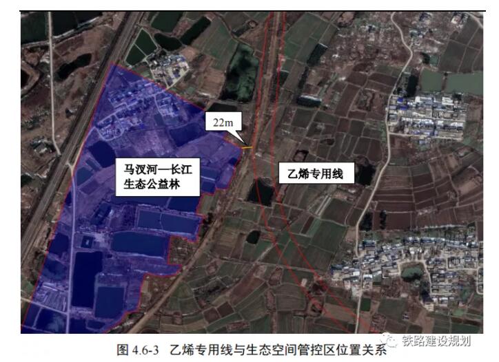 揚子乙烯專用線鐵路接軌于林浦線浦鎮站,線路全長 24.6km,1985 年開工建設,1987 年竣工驗收。