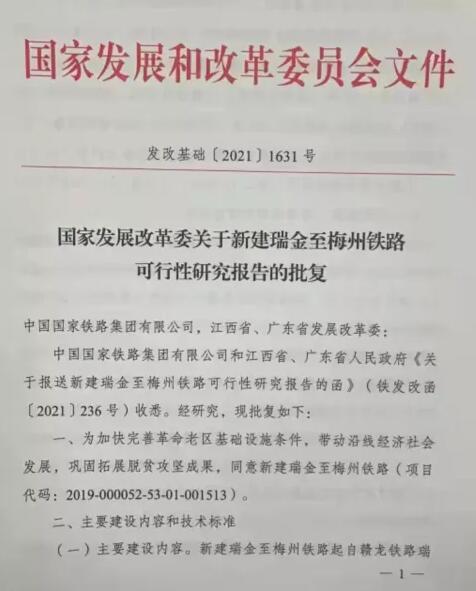 11月23日消息:記者從市發改局了解到,日前,國家發改委正式批復同意新建瑞金至梅州鐵路。該線路將進一步完善革命老區基礎設施條件,有助于帶動沿線經濟社會發展,鞏固拓展脫貧攻堅成果。