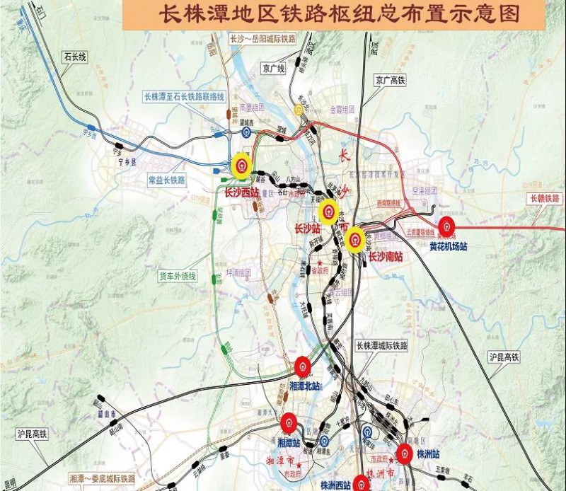 按照長江經濟帶、中部地區崛起戰略要求,積極推進長江中游城市群省會城市融合發展,提升長沙市省會城市的輻射帶動作用。加快實施鐵路“米”字型通道建設,建成渝長廈高速鐵路常益長段、開工建設渝長廈高速鐵路長贛段,啟動長九高速鐵路、京廣高速鐵路復線等項目前期研究,實現長沙和成渝地區雙城經濟圈、海峽西岸城市群等國家重要城市群、省會城市及其他大中城市高速鐵路便捷聯通。積極謀劃城際鐵路,啟動長岳城際、長衡(含長沙西至湘潭北至株洲西聯絡線)城際等項目前期工作,進一步縮短長株潭“3+5”城市群時空距離。