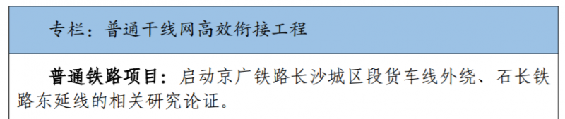 優化普速鐵路網布局,統籌考慮城市空間發展格局,減小貨物運輸對城市環境的影響,啟動京廣鐵路長沙城區段貨車線外繞、石長鐵路東延線等項目的研究論證,構建市域鐵路貨運大通道。