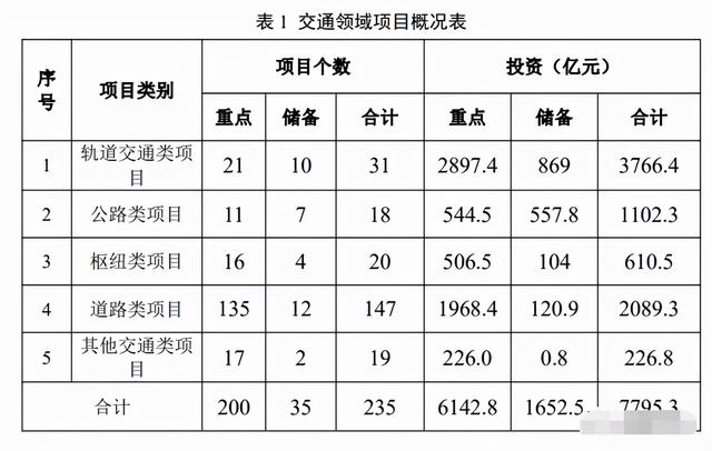 交通戰(zhàn)略項目共計 235 個,總投資額 7795.3 億元。