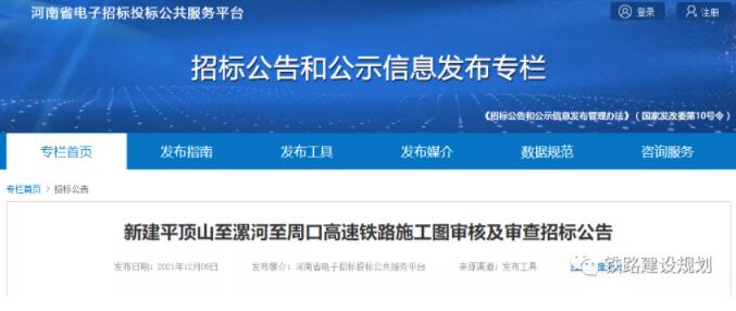 本招標項目新建平頂山至漯河至周口高速鐵路己由相關部門批準建設,建設資金已落實,招標人為河南高速鐵路有限公司(以下簡稱“招標人”),招標代理機構為河南省機電設備招標股份有限公司,項目施工圖審核及審查已具備招標條件,現進行公開招標,歡迎有意向且符合條件的單位參加本項目投標。