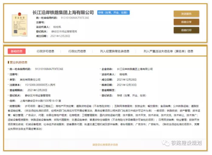 『長江沿岸鐵路集團上海有限公司』成立