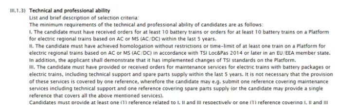 采購內(nèi)容:14列電池動(dòng)車組BEMU,包含可修復(fù)部件、工具以及15年的備件供應(yīng),合同還包括另外10列列車的選項(xiàng)。