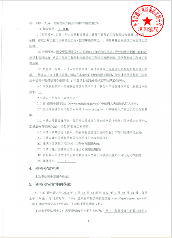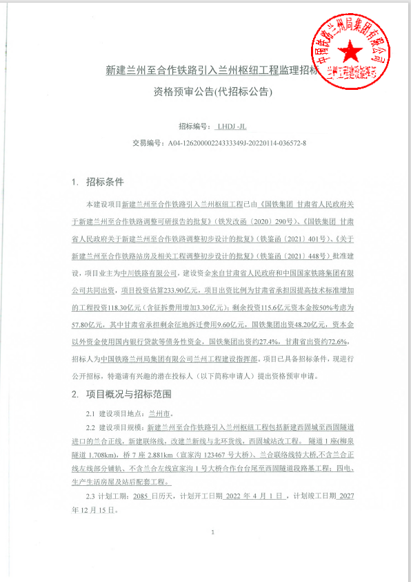 近日,甘肅省公共資源交易中心發布了《蘭州至合作鐵路引入蘭州樞紐工程監理招標 資格預審公告》。