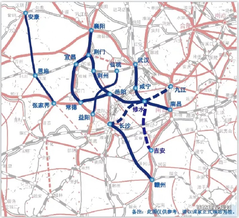 湘鄂贛省際相關規劃鐵路示意圖▼