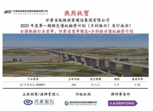 集團公司致力于打通多方融資渠道,解決“十四五”期間的鐵路建設資金融資需求。1月24日,甘肅鐵投集團綠色債權融資計劃(鄉村振興)成功發行10億元,該筆融資系全國鐵路行業首單、甘肅省首單綠色+鄉村振興雙標識債權融資計劃。