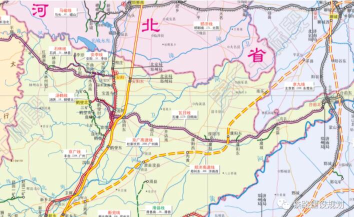 瓦日鐵路河南段走向和設(shè)站示意圖▼