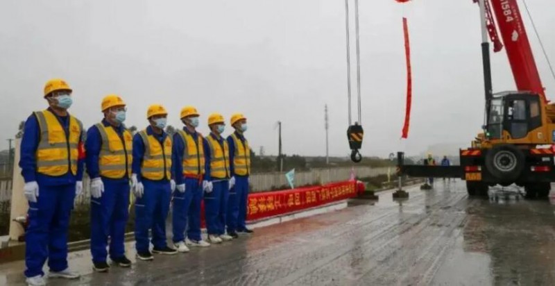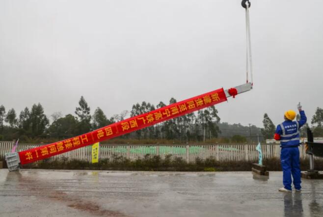 2月18日9時,在廣西南寧市興寧區邕武路附近的貴南高鐵建設工地,施工人員將首根接觸網支柱順利安裝到指定位置,標志著貴南高鐵全線正式進入“四電”工程施工階段。