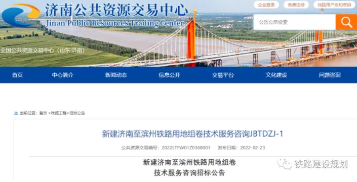 2月23日,《新建濟南至濱州鐵路用地組卷技術(shù)服務(wù)咨詢招標公告》及《新建濟南至濱州鐵路工程使用林地可行性報告編制服務(wù)招標公告》發(fā)布,標志著濟濱高鐵項目初步設(shè)計批復相關(guān)前期工作正加快推進,年內(nèi)有望開工建設(shè)。