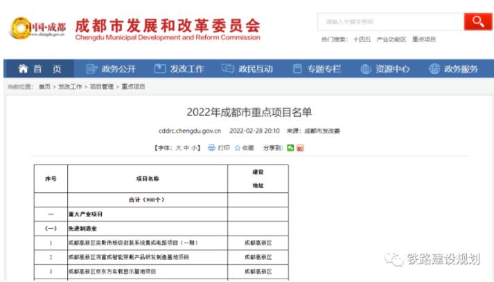 《成都市2022年重點項目計劃》涉及的鐵路和軌道交通項目名單如下(其中藍色為計劃開工項目):