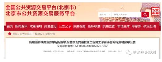 本建設項目新建渝黔鐵路重慶東站站房及配套綜合交通樞紐工程已由 國家發展和改革委 以《國家發展改革委關于新建重慶至黔江鐵路可行性研究報告的批復》(發改基礎[2018]1517號)批準建設,項目業主為重慶鐵路投資集團有限公司 ,建設資金來自國家鐵路集團有限公司、地方政府,項目出資比例為按約定比例出資,資金已落實,施工圖設計文件完備,招標人為鐵路成都局集團有限公司客站建設指揮部 。本次招標項目已具備法定招標條件,現進行公開招標,特邀請有興趣的潛在投標人(以下簡稱申請人)提出資格預審申請。