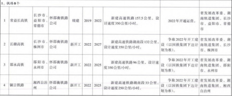 近日,2022年湖南省重點建設(shè)項目發(fā)布。項目共計309個。其中產(chǎn)業(yè)發(fā)展項目178個,基礎(chǔ)設(shè)施項目109個,社會民生項目16個,生態(tài)環(huán)保項目6個。其中涉及鐵路項目8個。干線鐵路方面,常益長高鐵計劃2022年開通運營,長贛高鐵、邵永高鐵和銅吉鐵路爭取2022年開工建設(shè)(以國鐵集團下達計劃為準)。