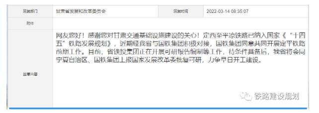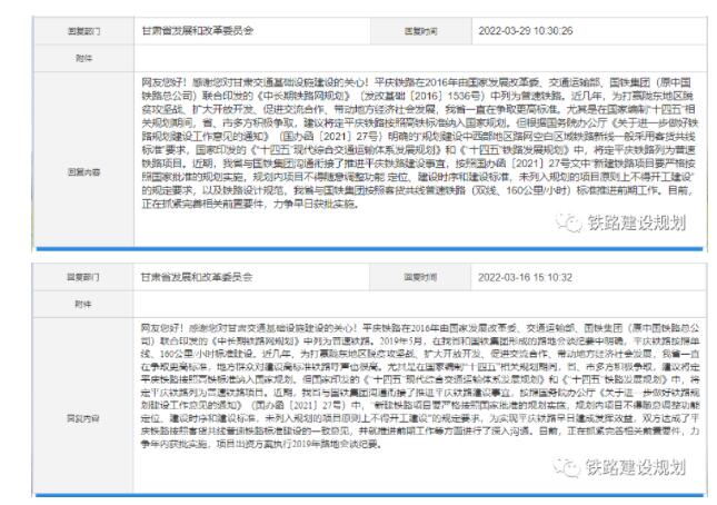 近日,甘肅省發改委在官網主任信箱答復了網友關于平慶鐵路建設標準問題的信件,詳情如下: