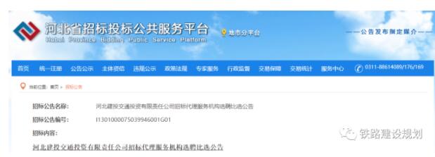 4月1日,《河北建投交通投資有限責任公司招標代理服務機構選聘比選公告》發布。招標代理內容為雄商高鐵項目中“三電”及管線遷改(河北段)施工總承包單位、監理、審價單位。河北建投交通投資有限責任公司為雄商高鐵河北段的項目業主。“三電”及管線遷改工程是項目開工的前提條件,預示著雄商高鐵即將進入主體工程施工招標階段,有望在下半年正式開工建設。