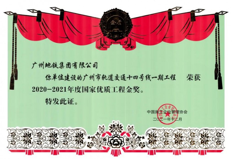 熱烈祝賀由我協會推薦的廣州市軌道交通十四號線一期工程、深圳市城市軌道交通9號線工程、武漢市軌道交通6號線一期工程、青島地鐵二號線一期工程等四個項目榮獲2020-2021年度國家優質工程金獎。